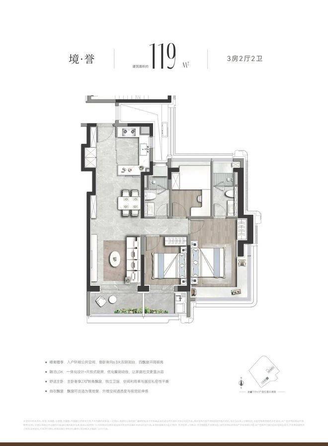 建面约112–119㎡ 精装大三房