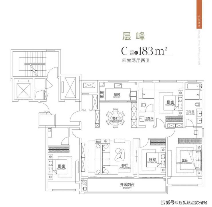 中海姑苏第以姑苏地脉为基,打造了集"无界、雅筑、桃源、精奢"为一体的产品价值体系,共有6栋14-17层的小高层,建筑面积约130~183㎡的隐奢精装大平层。