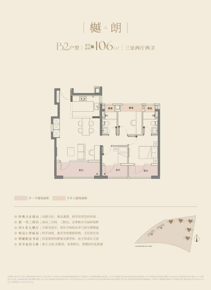 大华望樾的高层建面约94㎡户型做到了三阳台的配置;