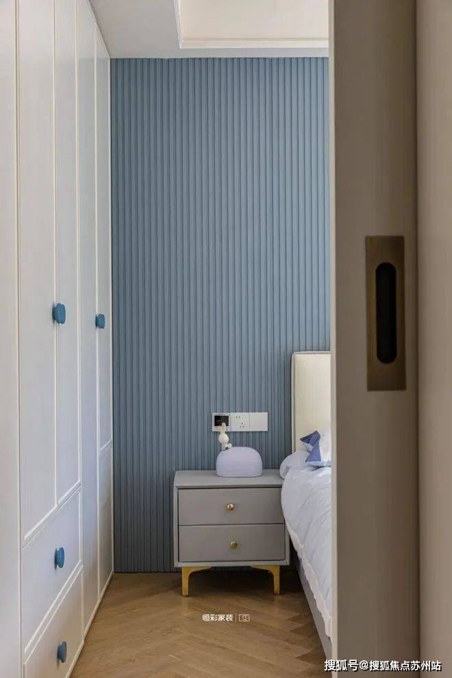 主卧还有一个值得一提的细节,飘窗下方增设隐形抽屉,作为补充收纳,不要太实用。本案有很多细节,都非常有想法又耐人寻味。