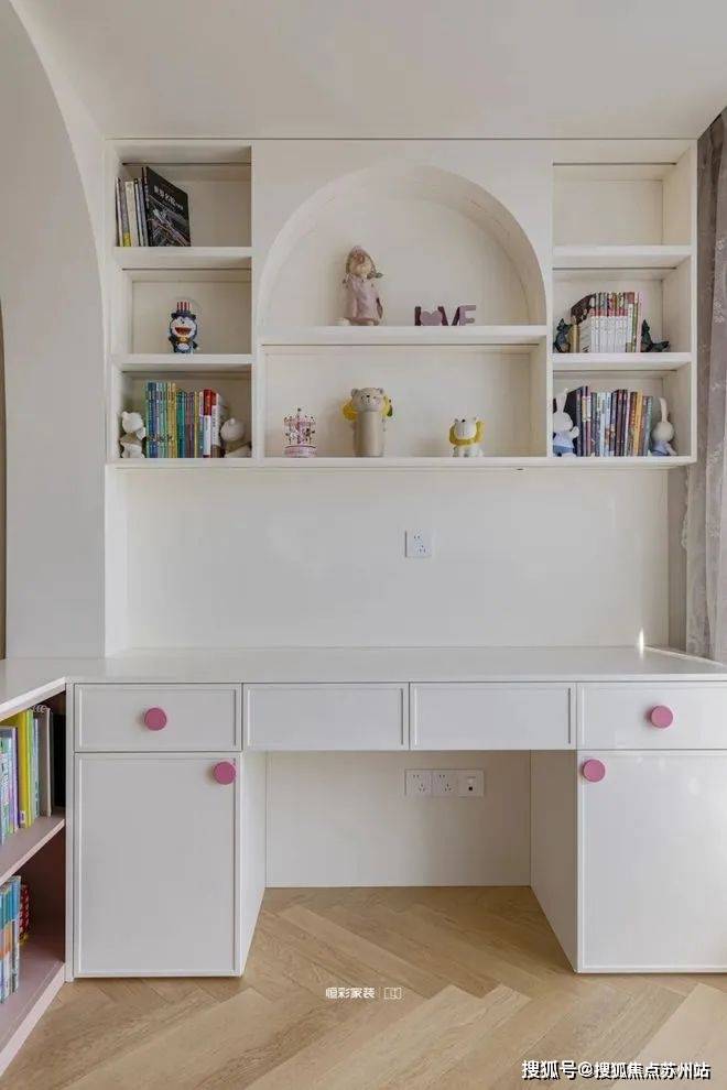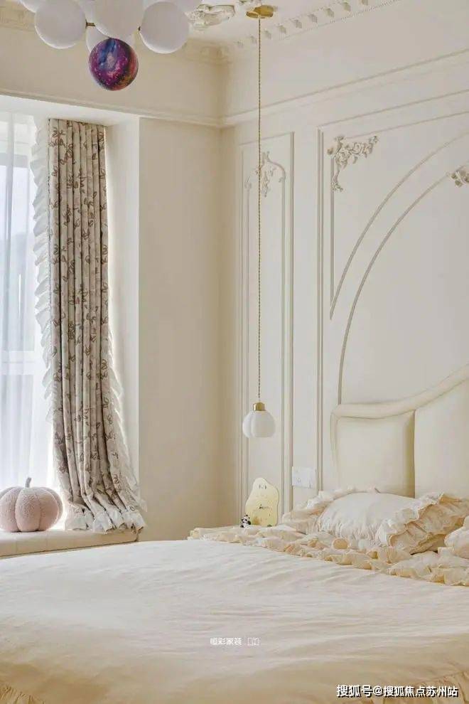 女儿房是奶油白主色调,浓郁法式感的拱门造型,加上复古优雅的白纱帘,整个空间相得益彰,古典油画仿佛定格在这一瞬间。