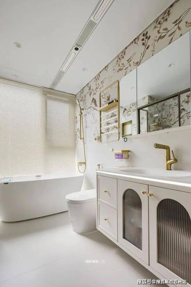 还有,浴室采用内外双开门,保证使用的舒适性,以及内嵌灯镜柜收纳,将空间感最大化。