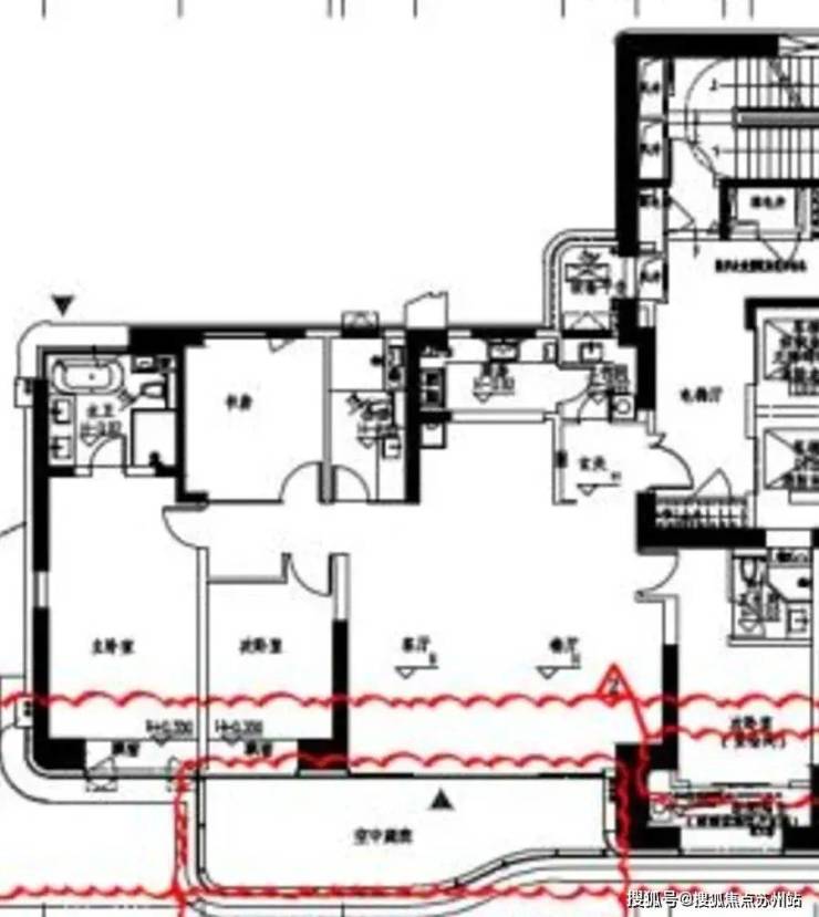 4房2厅3卫设计,中西双厨,南向约6米大横厅,主卧开间3.8米,带独立衣帽间和双台盆+浴缸的浴室,南次卧带封闭阳台和独立卫生间。