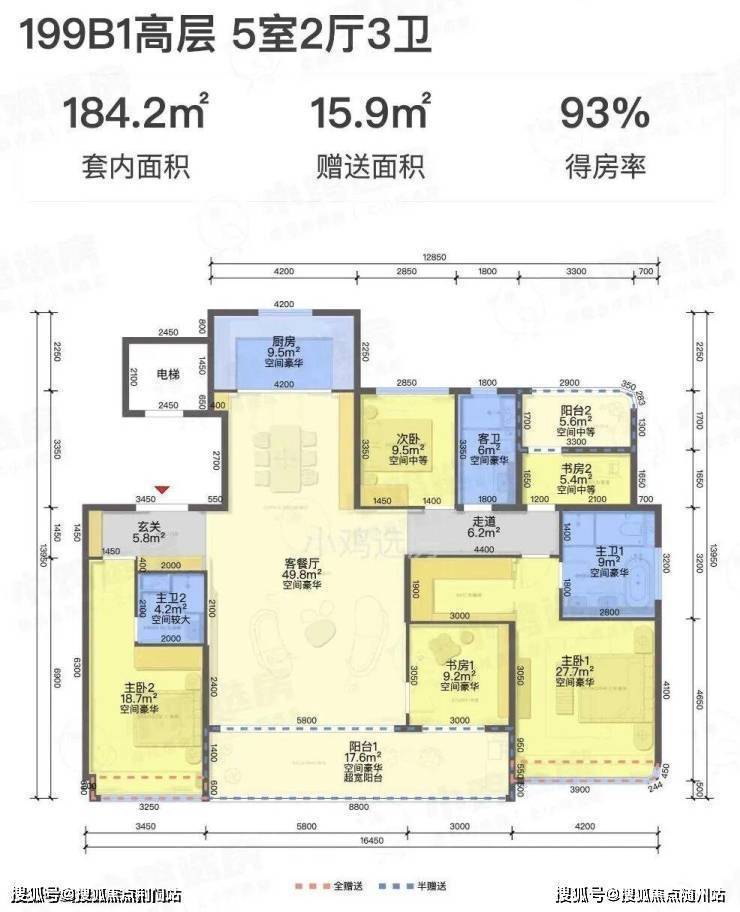 高层规划建面约169-199方的户型段保障了圈层纯粹,这个户型段过去几年来供应的新房户型差异性都非常小。