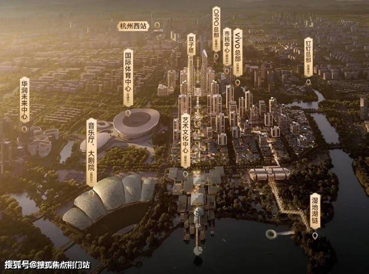 边上有市民中心、国际体育中心、艺术文化中心、音乐厅、科技馆、大剧院、OPPO移动终端研发总部、字节跳动华东中心、vivo全球AI研发中心钉钉全球总部、阿里巴巴等。