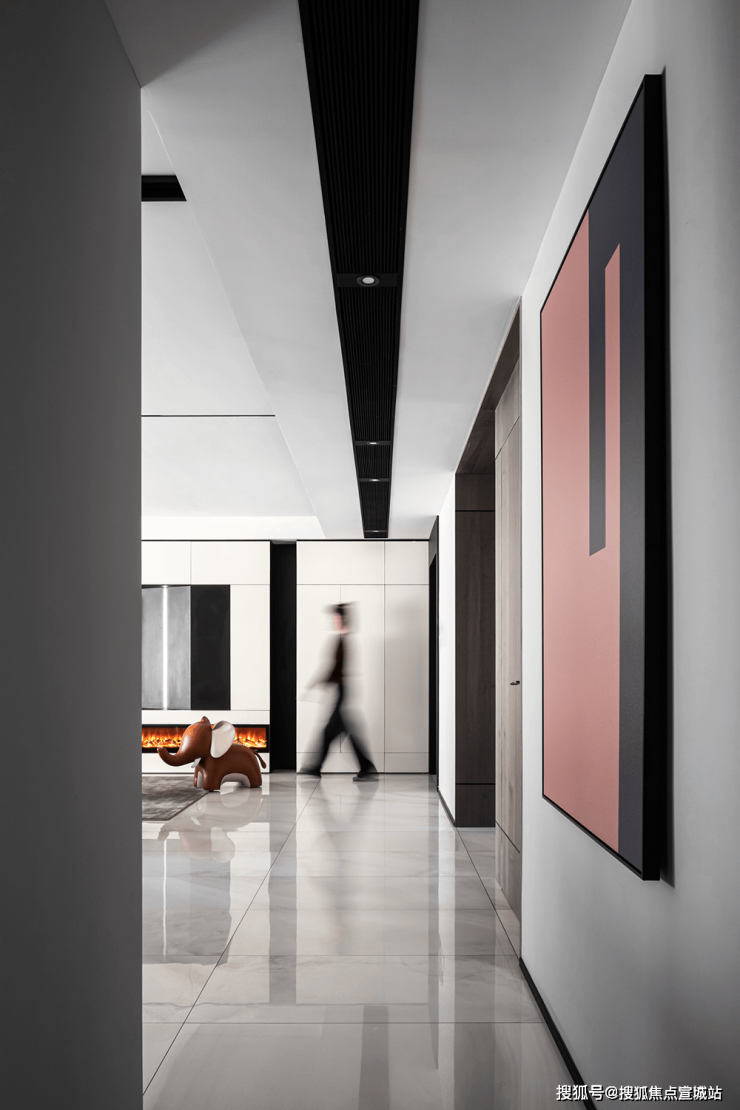 苏州爱情溪岸售楼处电话☎:400-8828-814(售楼处预约看房热线)电视背景墙以通顶的柜体来塑造,白色哑光面柜体将黑色电视机包围其中,与主色调黑白配色相吻合,中间内嵌灯带起到点睛之笔的作用.