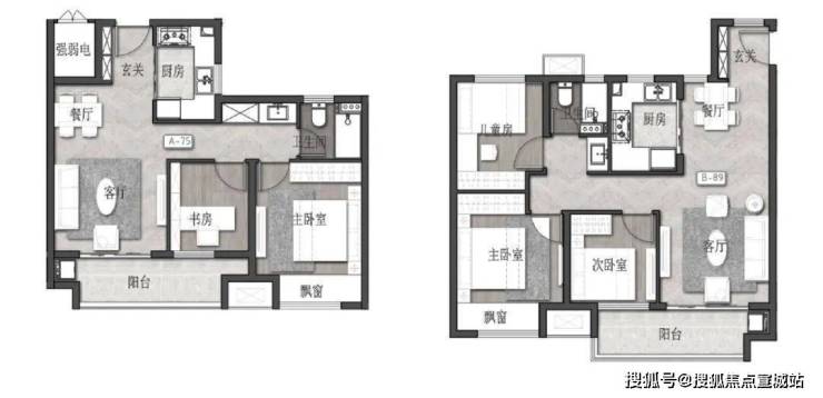 △75㎡(左)89㎡(右)户型平面图