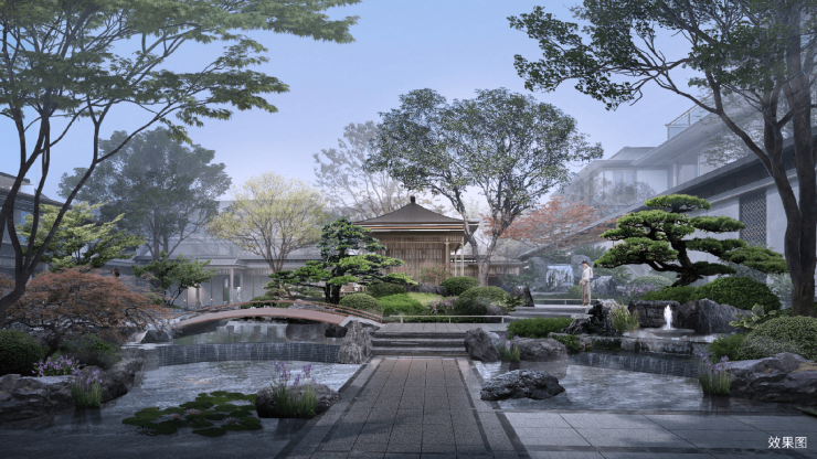 社区里规划了约1200㎡的中央园林,亭台楼阁、小桥流水,一步一景,就像把一座微缩的江南山水搬进了家。回家要经过“三进门仪”,从气派的迎礼门,到雅致的石泉院,再到意境悠远的山水园,仪式感满满,重现了传统雅居的礼序之美。