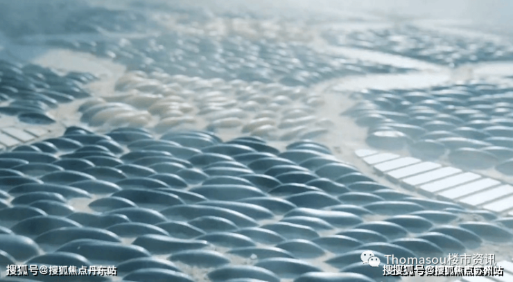 项目容积率仅0.4,园内布局南北主轴、东西水巷,宅间巷道串联融通,设九大景观组团,师承中国现有的古典名园,形成“一环、两轴、九境”布局。而三期188席中式园宅,建筑依巷分布南北,横平竖直,秩序井然。