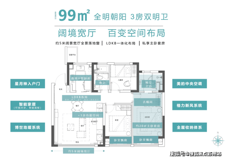 当大多数户型还在纠结“要功能还是要舒适”时,文泽华府建筑面积约99㎡户型,用约3米层高+约5米南向宽厅,赋予空间前所未有的呼吸感。