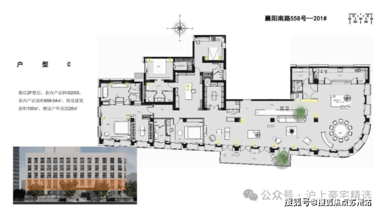 ▲659.04㎡丨4室3厅4卫1花园丨赠送面积100㎡丨赠送户外花园25㎡