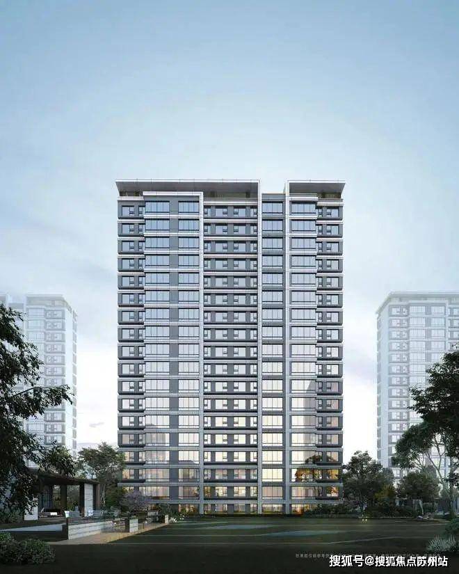 项目规划有12幢18F现代美学风格的建筑,外立面采用玻璃幕墙搭配米白色和深灰色材质涂装,简约线条分割完善挺拔向上的平面美学。