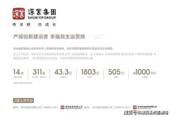 深业集团是深圳市人民政府全资拥有、深圳市国资委直管的大型综合性企业集团,拥有40年运营资质。以“产城创新建设者,幸福民生运营商”为发展愿景,聚焦地产、园区、运营、幸福、资本和数字化六大核心业务,实现城市综合开发运营的一站式服务。