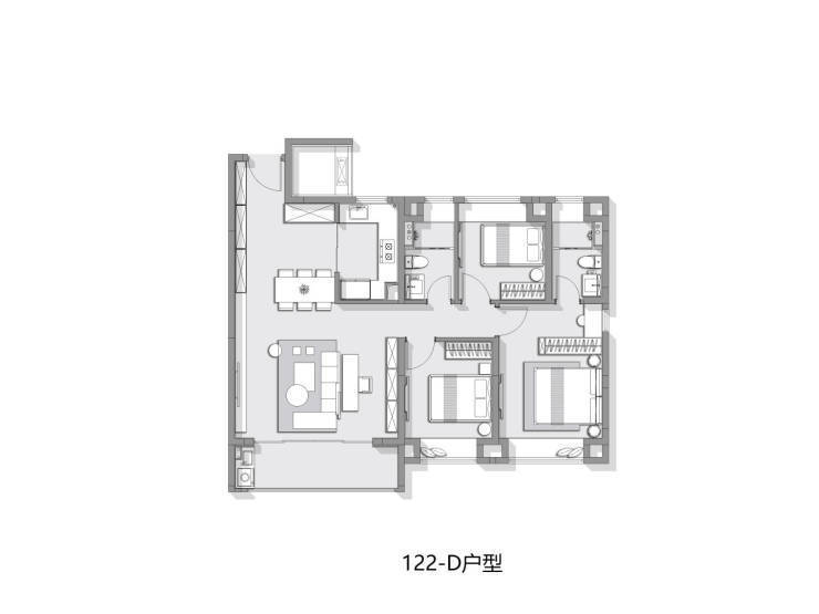 122㎡四房两卫6.8米宽厅连接270°观景阳台约534-560万主卧套房带独立卫浴与衣帽间