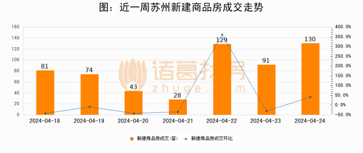 【苏州成交日报】04月24日新房成交130套、二手房327套;涨价房源308套