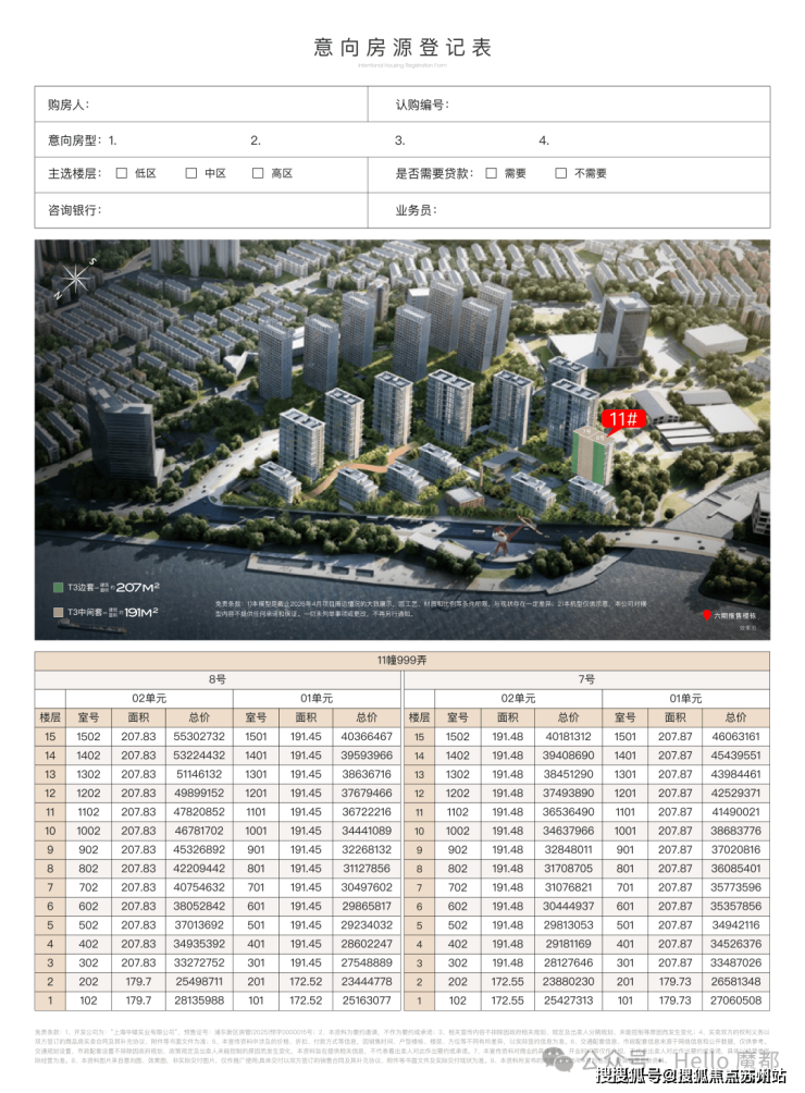•户型面积:190-207㎡大户型,3-4房设计,满足高端需求