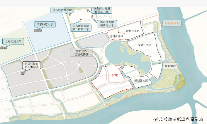 项目西侧是紫竹高新技术园区、北面是交大和华师大校园,以及紫竹基础教育园区,包含幼儿园至高中全龄段教育配套.