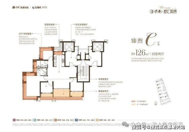 小高层类一梯一户、三阳台设计(部分户型)、270°无柱飘窗(部分)