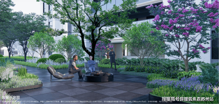 芳草花厅,由香樟、迷迭香、夜来香等构筑,缤纷色彩与清新芬芳相结合,为业主提供野餐、放风筝等场景活动;