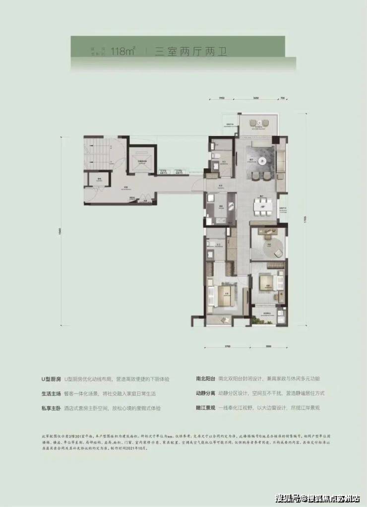 四开间朝南、全明结构、13.6 米南向面宽,让客厅、阳台与卧室尽可能全部南向排布成为第一设计原则,不仅保证居家大部分时间充分享受清风、阳光与风景,更让每一个家庭成员平等享受家与自然的交互;约7.1米连体大阳台奢阔格局,以GAME、GROUP、GARDEN、GALLERY、GYM作为主要功能,可以是孩子的游乐场,奶奶的小花园,爷爷钟爱的风景画廊,妈妈的闺蜜趴,爸爸的图书馆。一方空间的高度利用化,也形成家庭温馨的美好场景。
