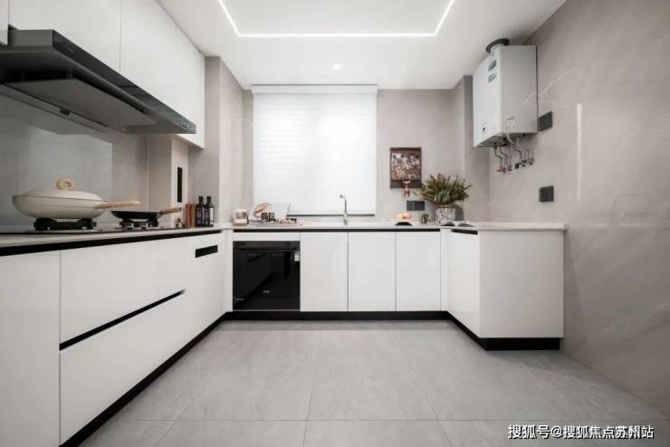 开间约3.4米U 型厨房,相较于传统L型设计,同等厨房面积下,U型操作台空间可超出30%。更加符合国人清洗、切配、烹饪的操作习惯;厨具选用的是方太抽油烟机、燃气灶,更懂中国人的做饭习惯,超大功率拥有瞬吸功能,可快速吸走浓厚油烟。防碰头弧度边角,给予客户贴心的产品使用体验。