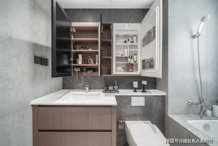 再比如,镜柜隐藏美妆冰箱,带化妆灯,放置化妆品以及面膜等保鲜,也是昆山首创!未来女主人的面膜、水乳精华都可以放进来,再也不用担心存放不当导致变质的问题。