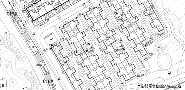 局部截几张,从建筑高度来看,项目西北角3F,H=11.8米,应该是联排产品了。
