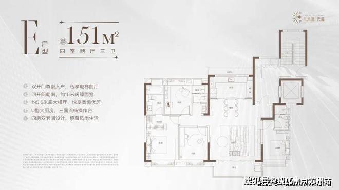户型设计:项目提供多样化的户型选择,满足不同家庭的需求。主力户型为建面约71-151㎡的2-4房,户型设计合理,空间利用率高。其中,122㎡四房户型为南北通透+双套房设计,是项目的王牌户型。