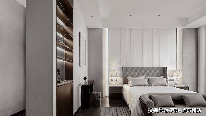 主卧在走道里侧,确保了房屋主人的私密性,也带来一丝安稳,舒缓基调下,整体层次缓和过渡,线条和体块有序排列,墙面结构的改变推导出视觉中心,橡木地板和墙布在灯光烘托下,搭配出细腻柔和的氛围,窗前一张靠椅 一盏灯具,在安宁静谧的时光中 寻得自在!