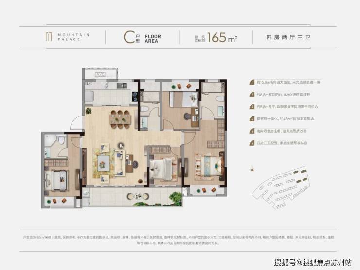 户型:125㎡(四房两厅两卫)、139㎡(横厅设计)、165㎡(非标三卫)