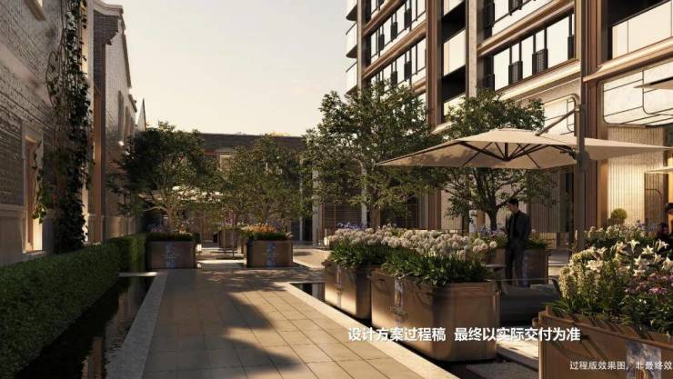 特别设计了八大映象典藏场景景观节点,有百年梧桐下的静谧巷道串联各景观节点,还有充满文化积淀的海派艺术庭院等,营造出精致、典雅的高阶生活氛围。