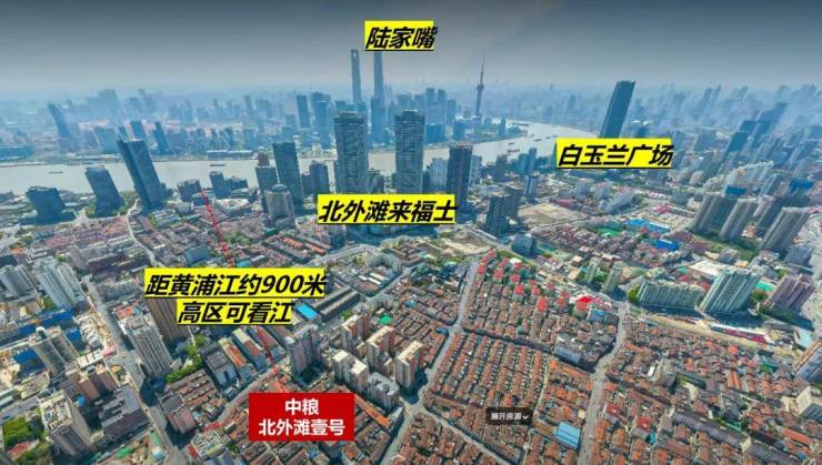 另外,地块距离黄浦江直线距离仅约几百米,步行可达北外滩滨江绿地公园,与陆家嘴隔江相望;除此之外,东面约1.2km是上海江浦公园,北面约1.5km是占地264亩的上海和平公园,坐拥上海市中心难能可贵的生态资源。