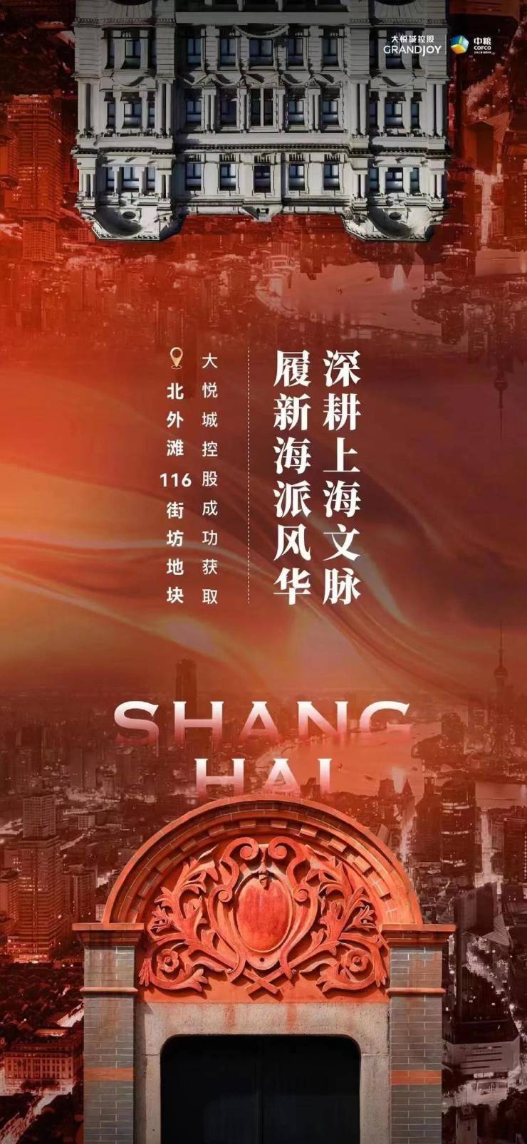 2023年9月5日,大悦城控股上海大区公司通过上海联交所成功竞得上海市虹口区北外滩116街坊地块。这幅地块位于北外滩红线内,靠近大连路地铁站和新弘北外滩(已售罄)。地块位于北外滩红线内,靠近大连路地铁站。