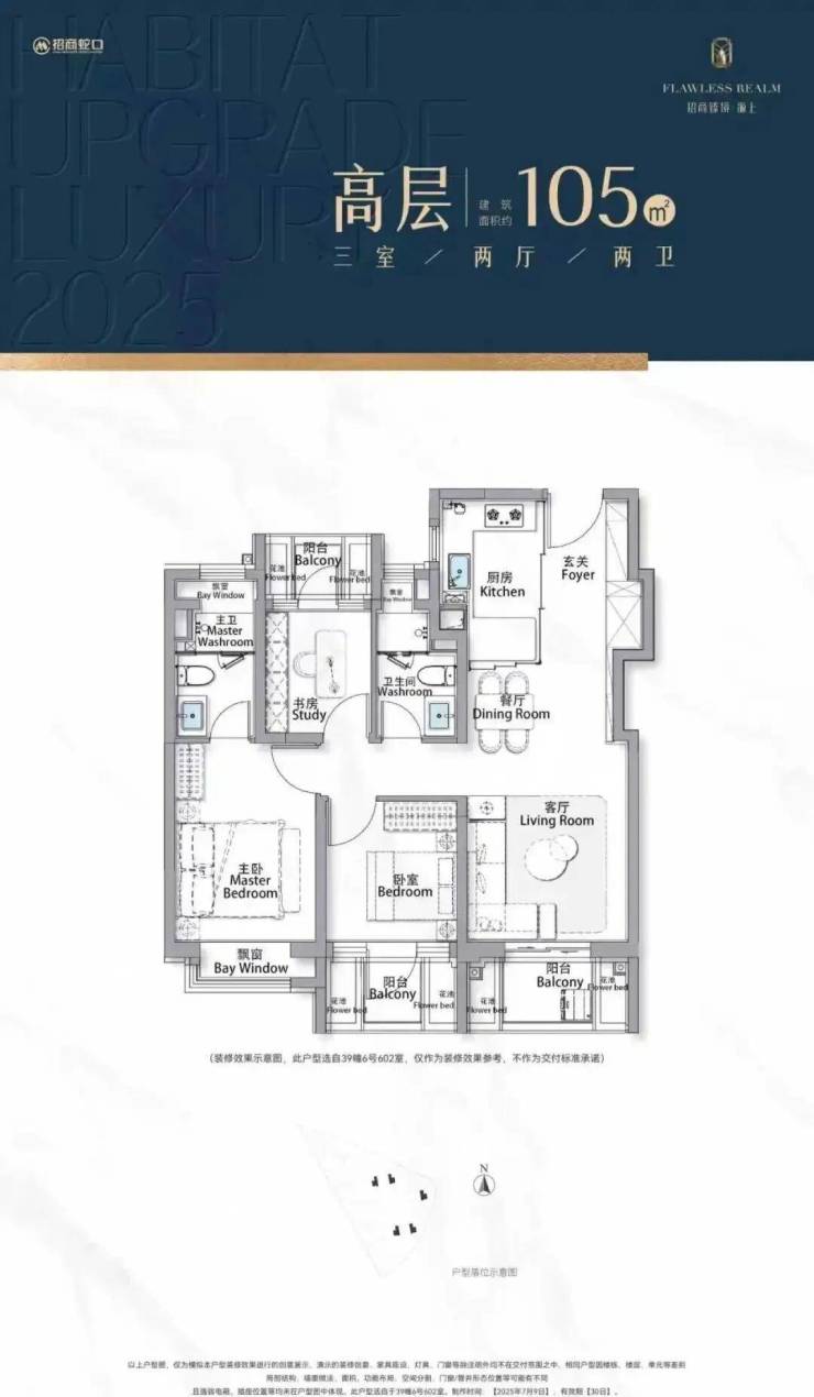以105㎡的户型为例,“三阳台”搭配花池的设计,直接性价比拉满,按照规定:三个阳台只算一半面积,花池不算面积,加上主卧+卫生间还带飘窗(主卧飘窗非承重结构),如此算下来,对购房者而言,日常可以实打实利用到的面积是远超市面上其他三房产品。