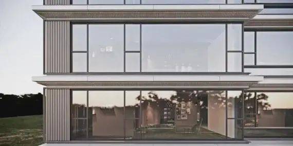 同时,斜切角的屋檐,消解了建筑厚重的体块感,使建筑更加轻盈,更加细腻,更加现代。