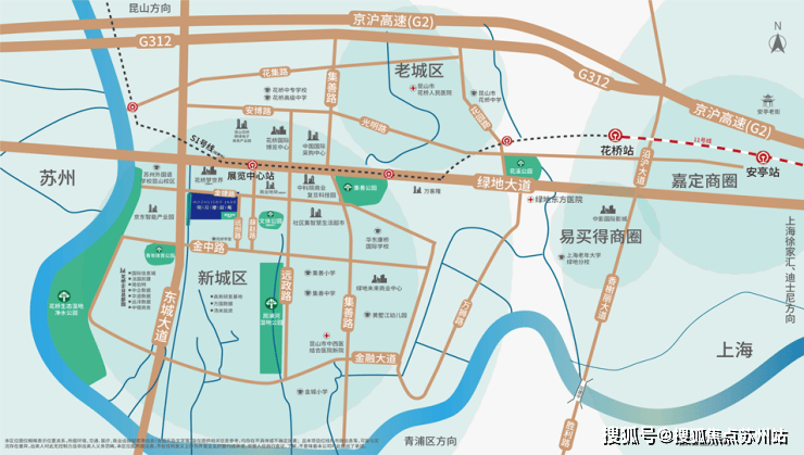 城市发展,交通先行。 上海地铁11号线加速了花桥上海两地连接; 沪宁高速、312国道、上海绕城高速、苏州11号线交汇同城化深入发展,承接着更多上海的外溢需求。