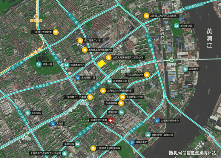 项目 距离地铁12号线爱国路站步行仅约500米 ,距中环约1公里,通勤便捷高效。北侧 紧邻上师大附属杨浦滨江实验小学 ,周边全龄段教育资源环伺。