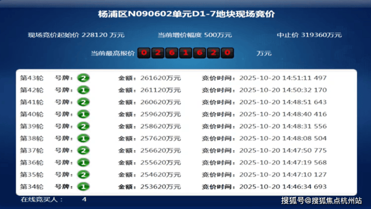 10月20日,上海八批次土拍中,保利置业以总价261620万元竞得杨浦定海N090602单元D1-7地块,该地块溢价率14.69%,楼板价69958元/㎡。