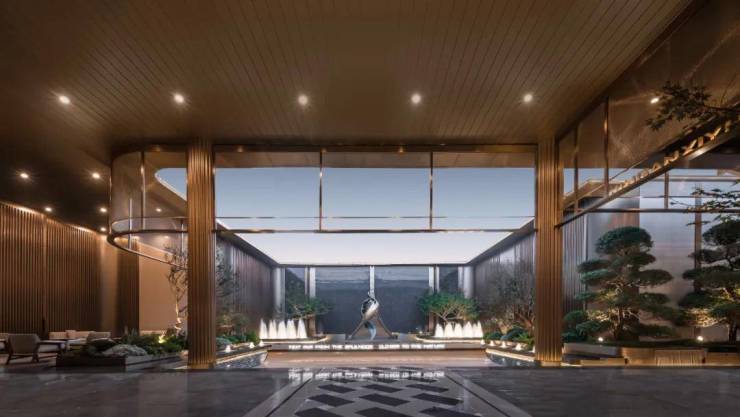 给大家秀一波静安玺樾美学示范区实景图!入口是酒店港湾式落客空间,一棵充满艺术感的造型树,蓝翡翠奢石点缀,提升整体品质感。内部是一座精致典雅的水院,艺术雕塑、喷泉水幕、造型树经典组合,仿若一座海派艺术公园~
