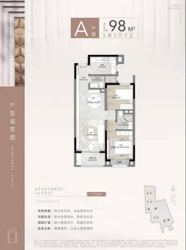 在售面积:94㎡/98㎡/100㎡2房2厅2卫
