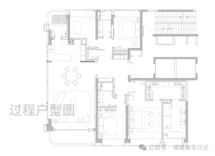 主卧大套房设计带超大主卫和独立衣帽空间,面积约50㎡,妥妥顶豪水平!