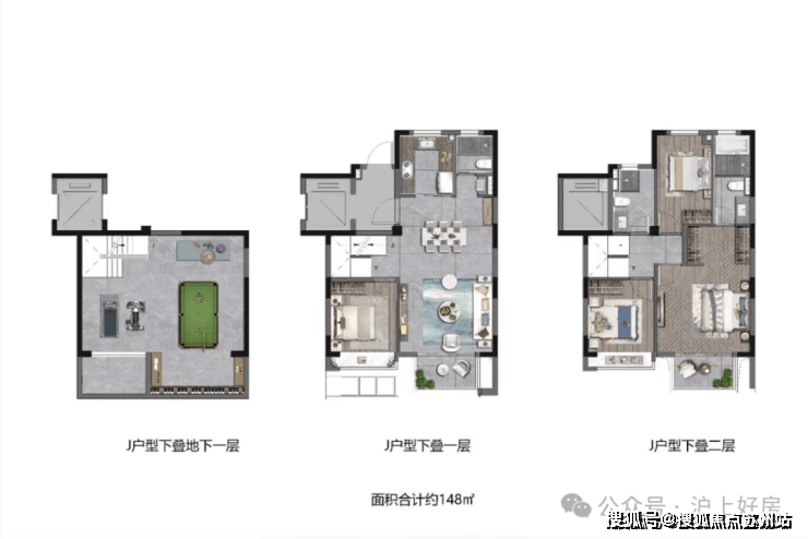 还有建面约135㎡三房上叠、建面约148㎡四房中叠以及建面约148㎡四房下叠,将多重生活场景安放在上下多层空间,满足叠墅生活进阶的期待。叠墅上有露台,下有庭院。
