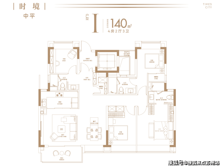 建面约135㎡4房2卫(小高层)▼