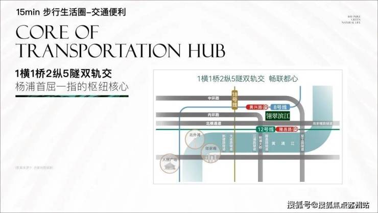 地铁:约900m8号线黄兴路站;约600m至12号线隆昌路站,5站陆家嘴,16条换乘通达全城