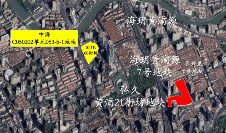 区位方面,弘久21街坊靠近人民广场,北侧就是在售中的海玥黄浦源;