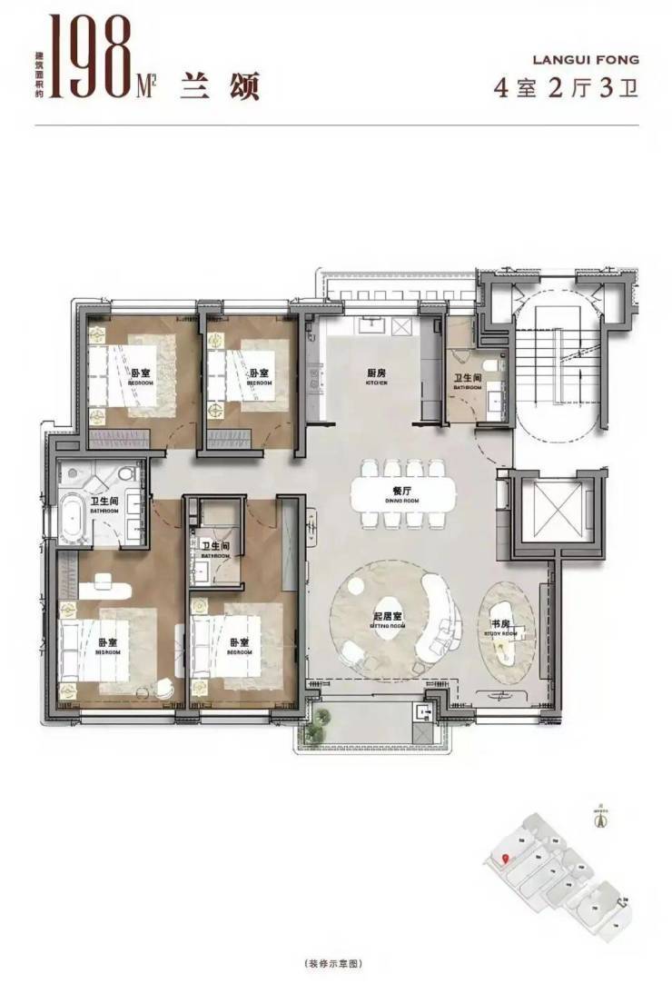 174-198㎡3-4房2厅3卫:11.7万/㎡,约2000-2600万