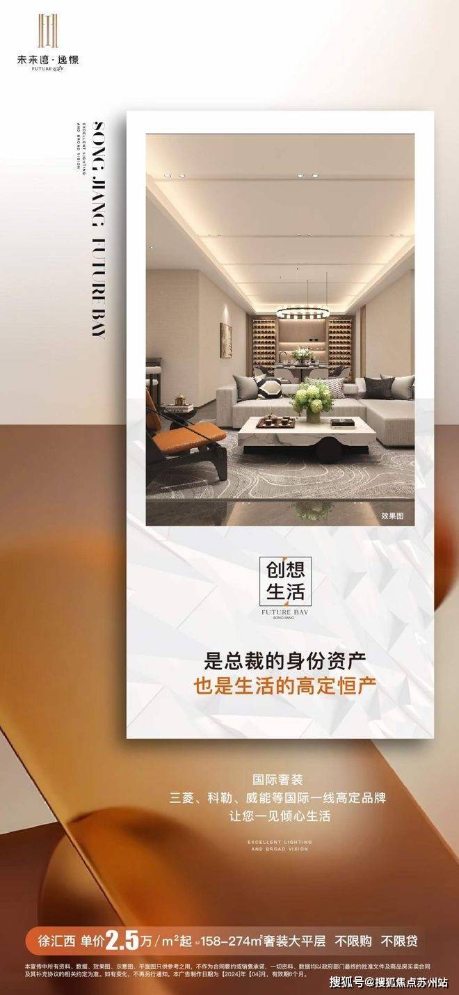 松江未来湾·逸憬售楼处,总价约2.5万/平米,位于松江G60科创走廊产业高能区域,拥有与周边住宅同样的双地铁高效出行和豪华装修配置,总价低,性价比高。