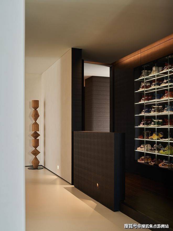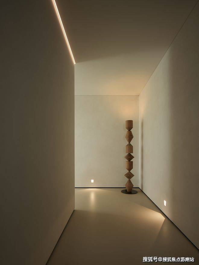 长廊是动静空间的过渡区域,通过光线和艺术品的点缀,让人的视觉体验更加舒服。