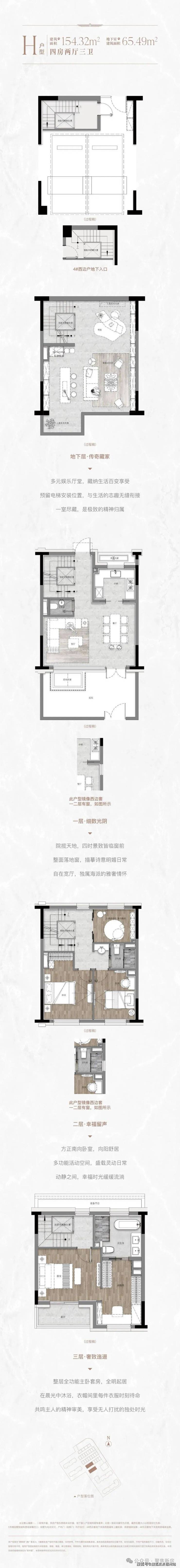 建面约130㎡户型,地上三层,楼上楼下分层而居,阔绰的地下空间又能丰富生活情境,重新定义了小面积墅居的标准.