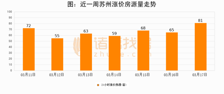 根据诸葛找房数据显示,苏州24小时涨价房源量为81套,较03月16日增加16套,环比上涨24.6%。与此同时,涨价房源占比小幅扩大,业主信心有所提升。